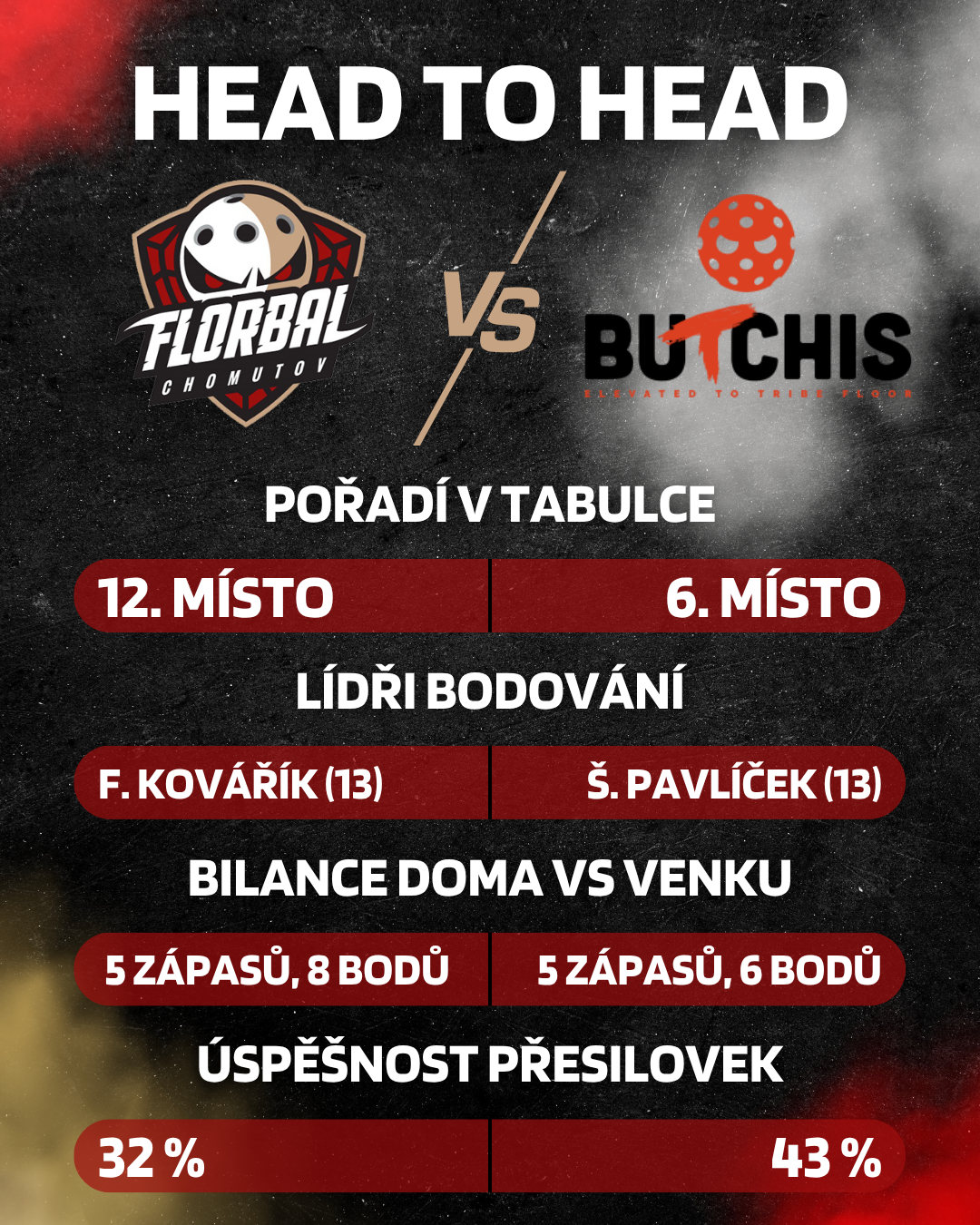12. kolo: GMS Florbal Chomutov - BUTCHIS 20:00 (pátek 7. listopadu)